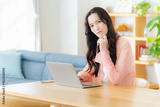 自宅でノートパソコンを操作する女性