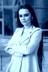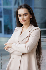 Confident Businesswoman Posing in Urban Setting with Elegant Attire