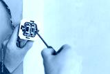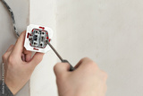 Close-up Of Electrician Hands With Screwdriver Installing a Wall Socket