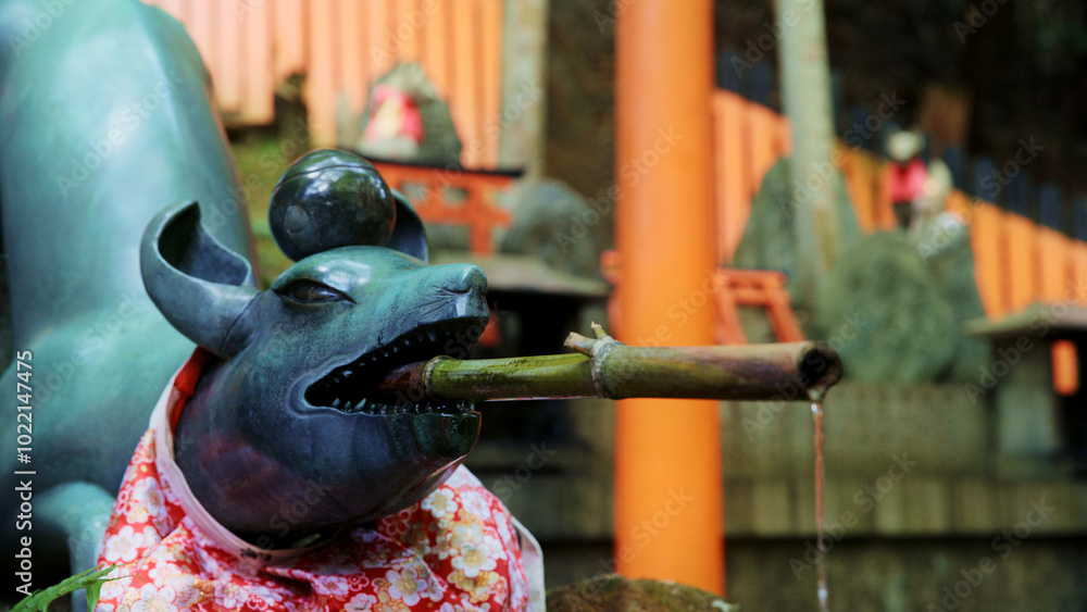Beautiful, ancient zen fountain in Japan - close up