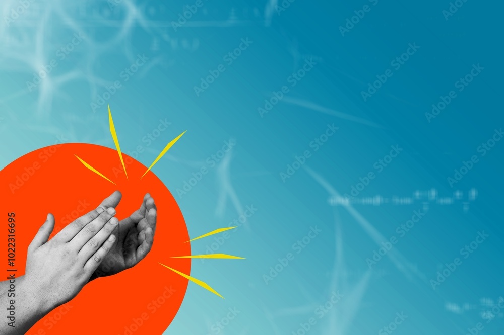 Applause, art collage, hands applauding on color background.
