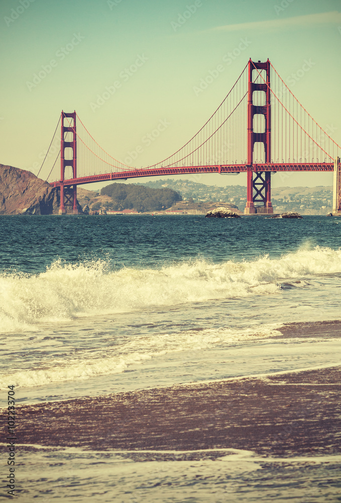 Retro stylized Golden Gate Bridge in San Francisco, USA