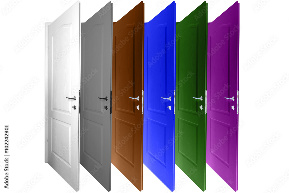 multicolored doors isolated on a white