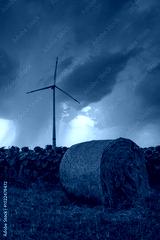 Windkraftrad auf einem Feld vor bewölktem Himmel