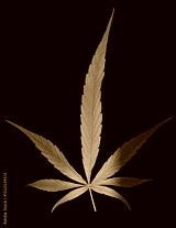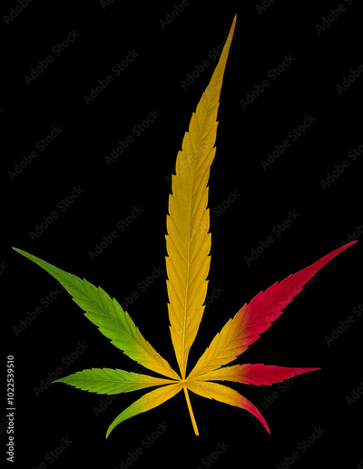 Feuille de cannabis aux couleurs rasta, fond noir