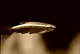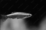 Macro view freshwater fish. White Cloud Mountain minnow. Freshwater aquarium tank scene. Swimming in deep water background. close-up, soft focus
