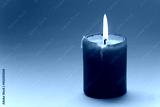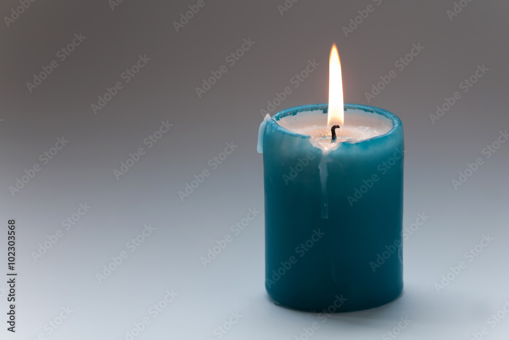 Turquoise candle on gray gradient background. Macro view. soft focus. Memorial day concept. copy space