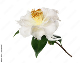 Extreme Depth of Field Photo of a Camellia With Dew Isolated on White