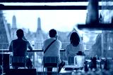 Travelers enjoying take look at view sunset time.