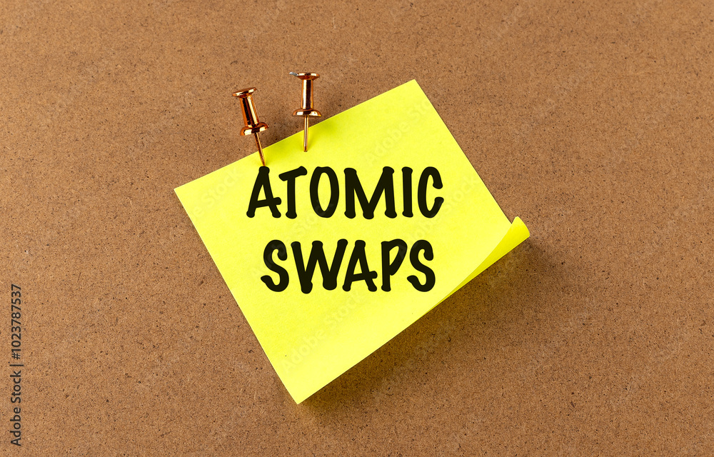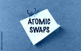 Atomic swaps written on sticky note pinned to cork board