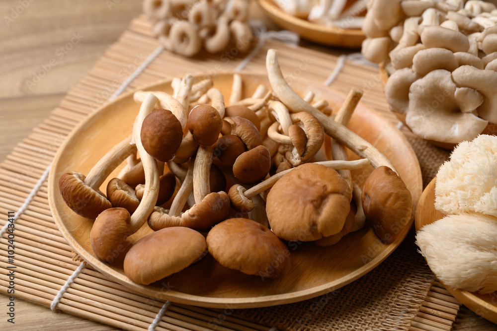 Yanagimutsutake mushroom, Oyster mushroom and Lion's Mane mushroom