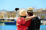 tourist couple making selfie photo while travel in Malta