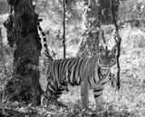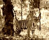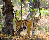 Wild tiger in the jungle. India. Bandhavgarh National Park. Madhya Pradesh. An excellent illustration.