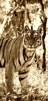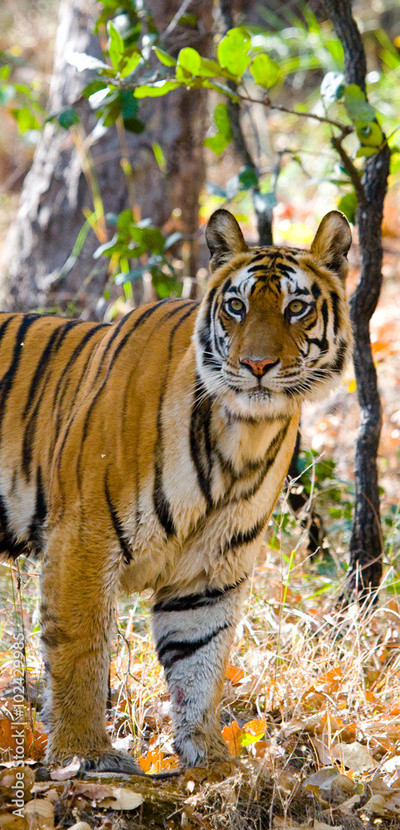 Wild tiger in the jungle. India. Bandhavgarh National Park. Madhya Pradesh. An excellent illustration.