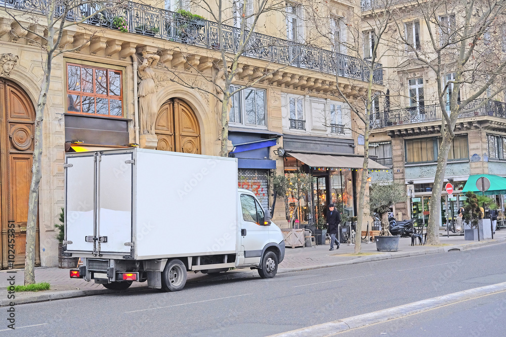 Paris, France, February 6, 2016: truck on a parking in Paris, France