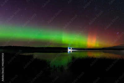 Aurora borealis, The Northern lights at Kuldiga, Latvia.