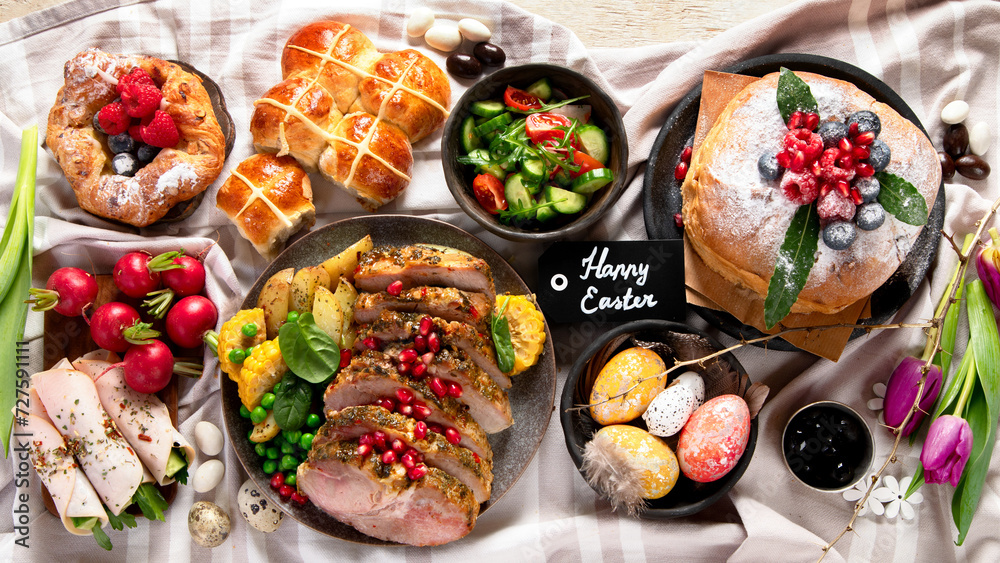 Easter eggs on wooden background