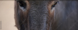 Fragment of a donkey's nose, selective focus. Brown fur