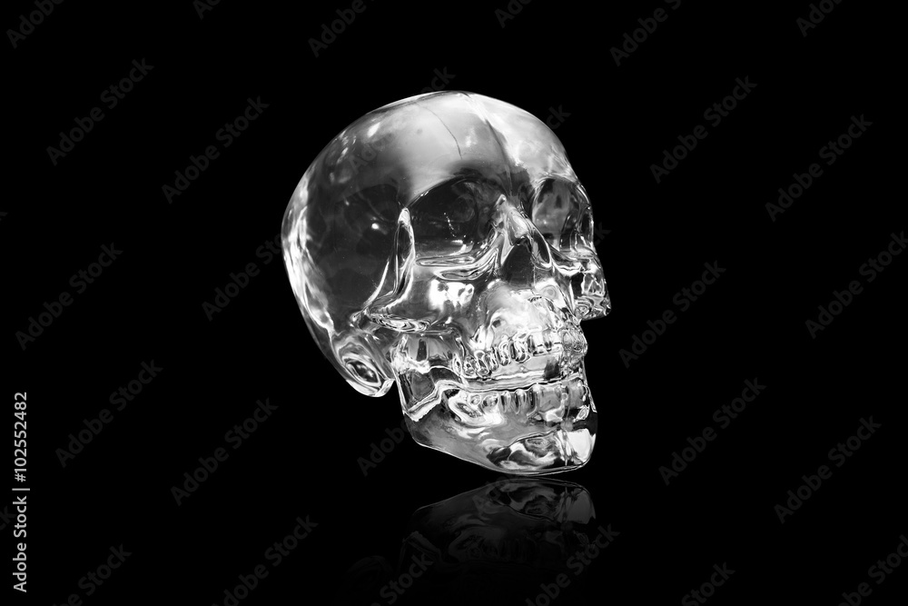 Crystal skull on black at angle ancient South American artifact
