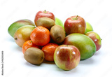 Collection of fruits : corsican clementine, kiwi, french apple, mango, grapefruit