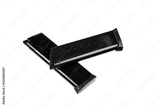Metal pistol magazine for 9 mm cartridges. Clip for ammunition. Isolate on a white back.