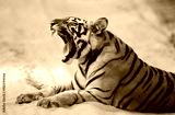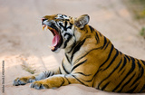 Wild Bengal Tiger lying on the road in the jungle. India. Bandhavgarh National Park. Madhya Pradesh. An excellent illustration.
