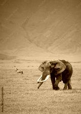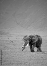 Big bull elephant roaming the Ngorongoro Crater of Tanzania, Africa.