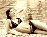 Young and sporty woman in swimsuit. Girl relaxing in a pool.