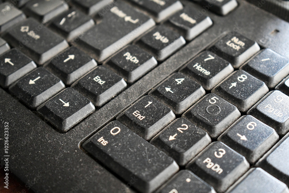 Dirty computer keyboard with lots of dust and cat hair.