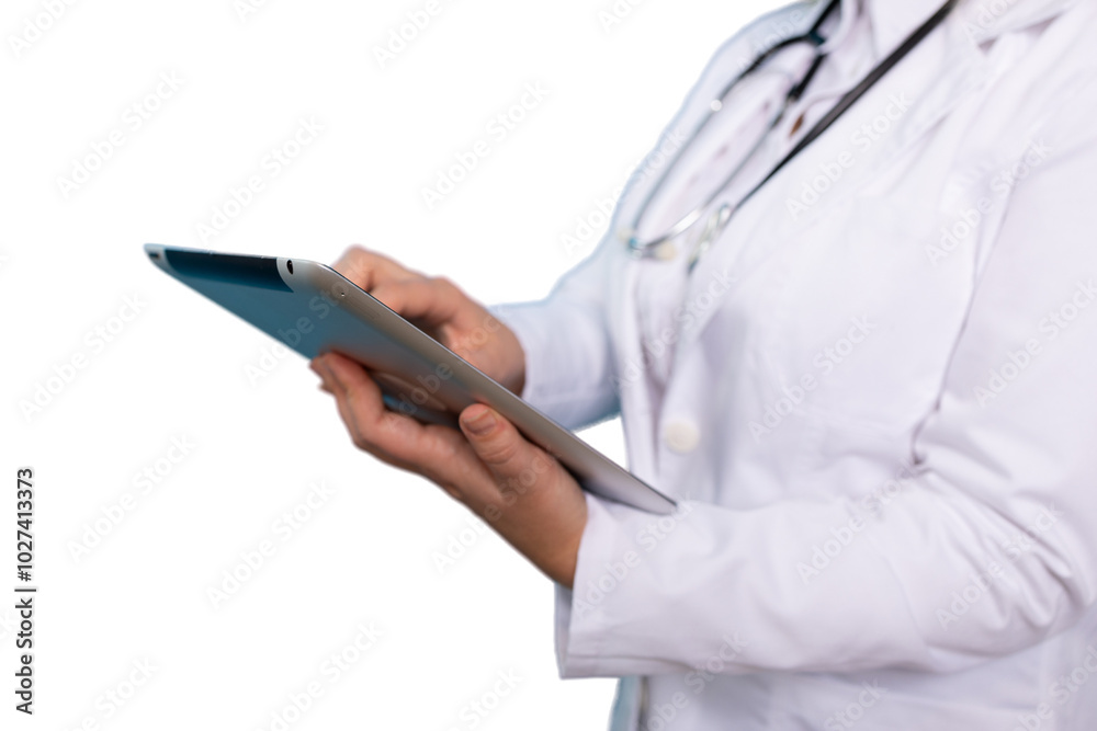 Young female medical professional ready for consultation with a tablet