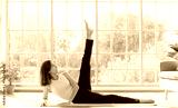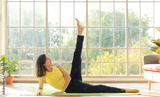 Young Asia woman practicing yoga lesson, breathing, meditating in living room at home. healthy lifestyle concept.