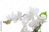 Weiße Phalaenopsis Orchidee vor weißem Hintergrund