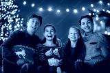 family watching holiday movies at home