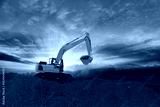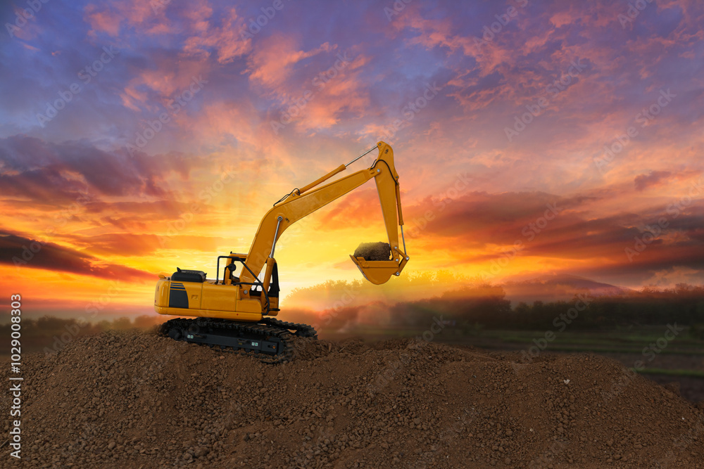Crawler excavator with are digging the soil in the construction site on the sunset backgrounds