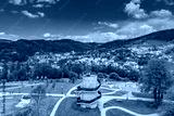Wieża widokowa w Muszynie widziana z lotu ptaka.