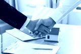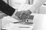 Real estate, success deal asian young woman handshake or shaking hand with landlord realtor, client male after buyer man signed rental, lease contract. Banker agreement mortgage loan, property lease.