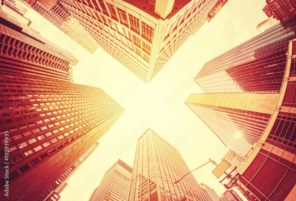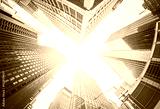 Fisheye lens stylized skyscrapers in Manhattan, busines concept