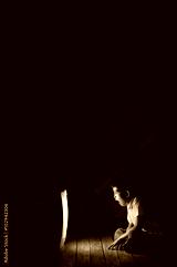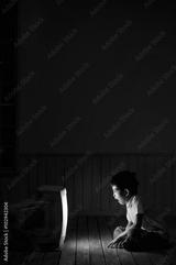 Boy watching TV at night