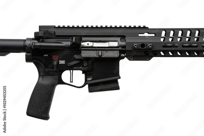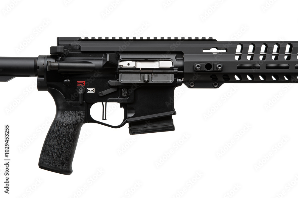 Modern automatic rifle isolated on white background. Weapons for police, special forces and the army. Automatic carbine. Assault rifle on white.