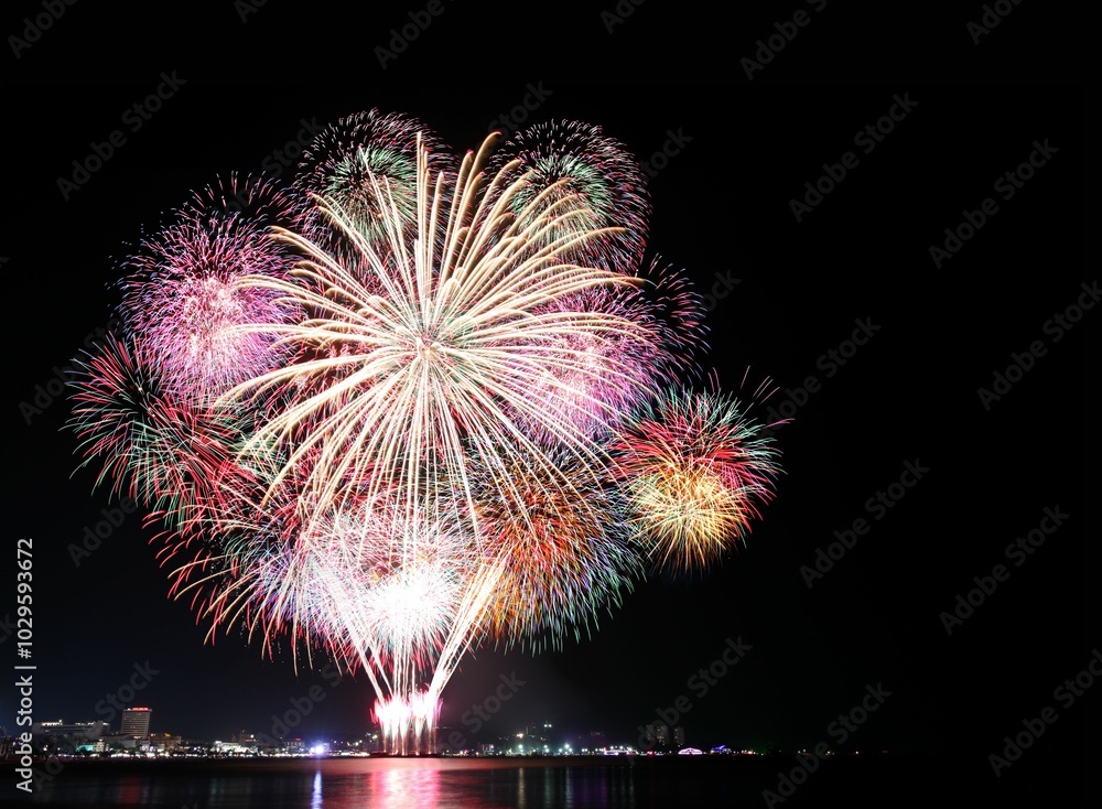 Colorful Fireworks in the Night sky,Fireworks Festival in Pattaya.