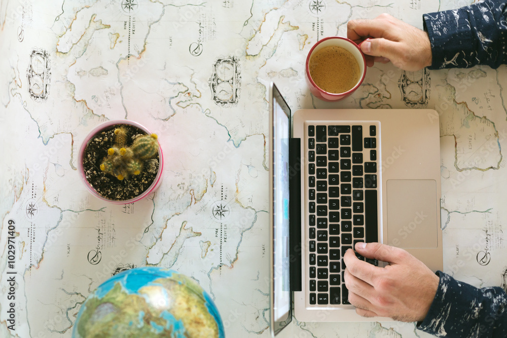 Planning to travel...Man planning trip around the world