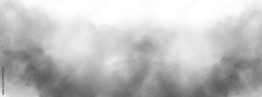 Smoke Texture overlays on transparent background. Misty effect, text or space, Design element, Abstract black gray texture. Png image.