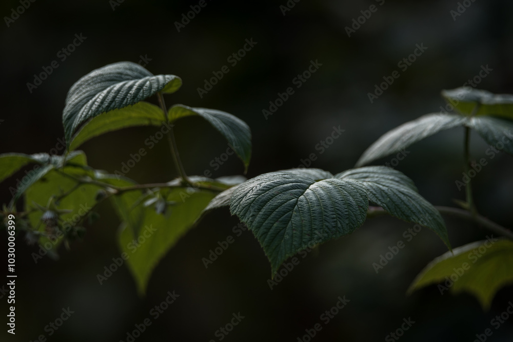 NATURE LANDSCAPE - Green leaves of a wild rose growing on the edge of forest
