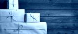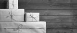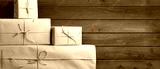 An arrangement of Stacked Rustic Gift Boxes set against a beautiful wooden wall