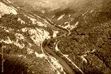 Stunning aerial shot of the Ovcar Kablar Gorge in Serbia, showcasing the winding river and rugged landscape, perfect for nature lovers and hikers.