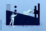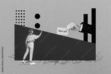 Composite artwork collage image picture of mini woman big arm hold new job placard isolated on creative background