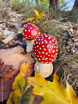 Red toadstool beautiful autumn mushroom in the forest.