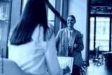 Two skilled professionals engage in a pleasant and friendly business meeting within a stylish modern office space