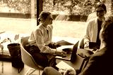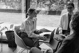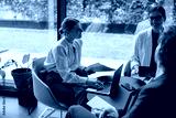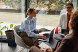 A collaborative team meeting is taking place with a variety of skilled professionals in a bright office environment