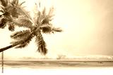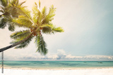 Landscape vintage nature background of coconut palm tree on tropical beach coast with sunlight in summer, retro effect filter